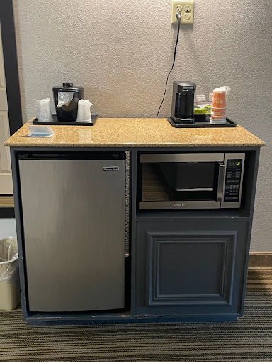 Read moreUnfriendly personnel!!!!!!!! Check in: Front desk attendant, very defensive, unaccomidating, curt/rude when asking about the advertised $69 rate. Very short answered and repeated that our rate was $87 plus tax for $98. Never ever answered why we didn't get the $69 rate that was advertised. No coffee, tea, or hot cocoa available in the lobby or room at anytime except for breakfast. Even then NO HOT COCOA!!!!! At breakfast, the food was tasty and plentiful!! Except for cocoa/ chocolate. When I asked the attendant if there was any cocoa/hot chocolate mix available, she didn't understand anything I was saying. After 2 more attempts to explain in a way that she might understand, she went off in a huff. Suddenly, the morning attendant was standing over me with her arms crossed and definitely an aggressive and accusing speech/talk and body language. She acted and spoke in a very condescending way!! It should not have ever happened this way if the 1st attendant understood and spoke English. The language of the USA. I also understand that people are trying to succeed in America but when they don't understand me, speaking English, they should not go off in a angry huff and complain. When I told the front desk lady that all I did was ask if there was any hot cocoa/chocolate available. She responded with Quick Sharp "NO!!!" answers. Then I said every other hotel/motel where we stayed had hot cocoa. The front desk attendant then made more negative answers and body language as I "recommend that the hotel should consider making it available". She went off in condescending huff!! There was hot water in a dispenser between the caffeinated and uncaffeinated coffee dispensers but for what reason?? I had a cup of hot water expecting to find hot cocoa packets. You cannot even begin to know how surprised I was when I didn't find any cocoa packets. It was good thing too! Because the water looked like dirty coffee water. Yuck!! When we left the breakfast area, going past the front desk, the same front desk attendant was holding her pink cell phone up and texting/scrolling with little to no attention at all to anybody or...