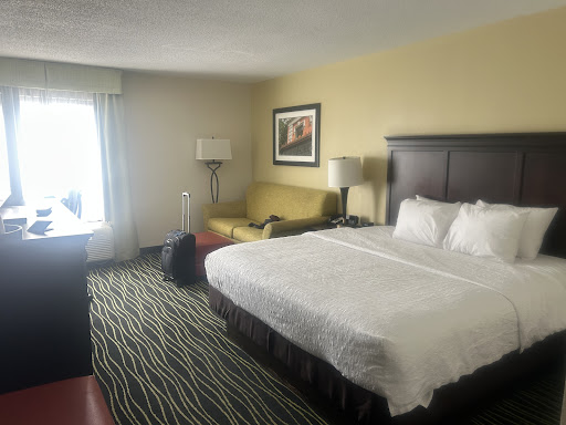 Read moreHusband and I stayed one night. We had a 6th floor king suite overlooking the front parking lot. Hallway was well lit. There are two elevators and both worked well but one had a loud rumbling noise as it went up and down. ||Our bathroom was small but nicely updated. There were pump dispensers for body wash, shampoo and conditioner inside the tub shower. The water pressure was good and the shower head was high enough to accommodate a tall person. A dispenser for body lotion was near the sink but ours was empty. We had a bar of soap and a pack of makeup remover as well. There were 4 towels and 4 washcloths each but only 2 each of hand towels. ||The room had a microwave and apartment size fridge with freezer. Both worked, as did an iron and ironing board which were both inside a closet. The closet door was also a full length mirror. ||The room was noisy. The fridge compressor ran all night and there was another low constant rumbling noise in the room that we couldn’t identify. So we didn’t sleep well even tho the bed was very comfortable. If we had stayed more than a night, we would have asked for another room. ||Breakfast had hot options (potatoes, sausage and scrambled eggs, oatmeal, waffles) as well as breads, cereals and fruit. I like how consistent the Hampton Inn brand has stayed, at least in the IS, when it comes to providing a hot breakfast. ||The staff here is friendly, polite and helpful. The receptionist who checked us in was very welcoming. The young man who worked the breakfast room was a joy to be around in the morning. Plus he made sure the food stations were always stocked and everything was clean. ||We walked the Harbison Walking Trail from this hotel. There are steps to the trail by the pool. It’s a lovely way to stretch your legs after you’ve been driving or flying all day. Ask the front desk about it. Highly recommend. ||Overall, despite the noisy room, we liked this hotel and hope to stay again when...