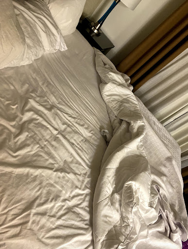 I ask if we can please get a quiet, high room and away from nurses (bc and stated there are Alot of nurses in the hotel who work at the hospital due to covid) bc we want to be safe for the sake of our parents and she looks down at her computer, does some typing and I'm assuming that she said OK and will adhere to the request. But alas, we get to the room (304) and it's by the elevator... Instant annoyance. But we were both tired and just wanted to relax. I didn't say anything. Me and my husband constantly heard banging above us during the day , like a dragging sound and boom. It was frustrating while we were there but luckily it was quiet at night.