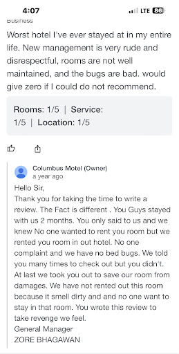 BEWARE! Not only will you be told you’re seeking revenge for leaving a bad review that is honest and can be proven. I turned in this hotel after they lied to my credit card company “ again I took pictures “ I was alone but they said I had company I fought with and caused guest to complain. It’s funny too because I left the hotel and did not stay! The room was disgusting, dirty, smoked in “. Cigarettes and marijuana”. I booked absolutely not the room that I was given and got there. Bathrooms were not clean. Appliances were broken and I did not feel safe. I was traveling alone as a female I was harassed. The pictures that they have posted are absolutely not at this hotel looks like but I am posting no pictures at the moment because like I said I’m turning them in. They lied to my credit card company, post misleading and deceitful. I encourage you if you stay here take pictures of your room. Also be prepared that they are disgusting rude liars. I have made a complaints to the health department I was so disgusted and disappointed I checked into the room and then I left to go meet up with Family and when I came back that’s when I decided after looking around and I was rapidly leaving. I left that hotel by 11 o’clock that night and I drove all the way back home because they were no hotels close by. The lady admits in a review her wrongs and I’m documenting everything. If you ask why I’m so upset I would say it’s probably because of the written report to my credit card company that was nothing but lies in the dispute, She says that everybody’s out to get revenge if they write a bad review I see that in Google reviews now. DO NOT STAY HERE. This is my place for people live. I am demanding all proof of her accusations. I’m sure she knows exactly how I am and I hope she does it!! See you in small claims court. I have pictures of the room. Proof through my vehicles Bluelink I left I did and traveled all the way back home. Not like I lived that far away about 40 minutes, but still. She as far as to say, I stole the room keys when I left them in the room on the counter. You. A see attachments of how they react to their...