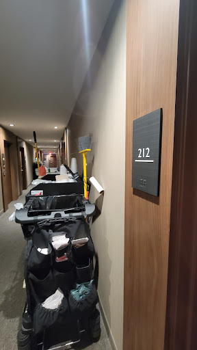 Negatives: -Felt a bit transient; a one night stay type of hotel. We spoke with one staffer who told us many who stay do not add their room guest names. On one afternoon, a woman came screaming from her room that a man had just hit her. I did not stick around for the details, but we heard he was arrested. Housekeeping staff needs a manager! We were told that rooms received a full cleaning on the third day of our stay. After checking this 2x with the front desk (one the evening before and the second on the morning of), we went out and returned to find that the room was not cleaned. As a matter of fact, the person responsible for cleaning our room parked their cart outside our door, but never entered. When we initially came up to the room, we saw the cart and decided to go back downstairs to wait. We returned shortly thereafter only to find the cart still outside our door. We entered our room, and no housekeeper was present, nor did they ever come un to clean. Shout out here to WANDA, who came to our rescue to clean the room. Wanda was not responsible for our portion of the hallway but took on the task with a willingness to help rectify the situation herself. She is someone who will hopefully be recognized by management. Breakfast/Food. My suggestion is to go elsewhere even if it is less convenient. There are better, more affordable choices in the area. Flying Biscuit, Iron Bank, Plucked Up, etc. The display was nice, but the overall quality was hurting for $15; only the buffet was offered. In addition, be warned that the woman who oversees the kitchen and prepared the hot food on the next morning of our arrival, will scold you if you get coffee in the morning earlier than the official start time, even if the urns are up and ready. Front desk staff. Great at smiling and assuring you things will be taken care of when you can find them at their post. Suggestion, to management, there is not much foot traffic at the hotel. If you want to keep your staff at their post, provide them with seating, a stool at a minimum. Most times, when we went down to the desk, the staff member was not at the desk. A call bell is needed. I also must express this as a safety concern. While the area appears to be overall safe, there were still unhoused persons roaming the streets, one appearing to have mental/drug related issues. Without the staff to monitor the front door and key control elevator, anyone can access the building or the common areas. -Room. (a) Not soundproofed properly, thin walls - we could hear our wall mates tv and conversations sometime until 2 a.m.; (b) We were not a fan of the very minimalist style. A long bench and a small all in one rack replaced a proper dresser to store clothing for extended stays ;(c) view from 2nd floor was of parking lot and do not believe view from 6th would have improved that fact. (d) TV was across from bed but could not be viewed comfortable from couch, no tilt/turn bracket.