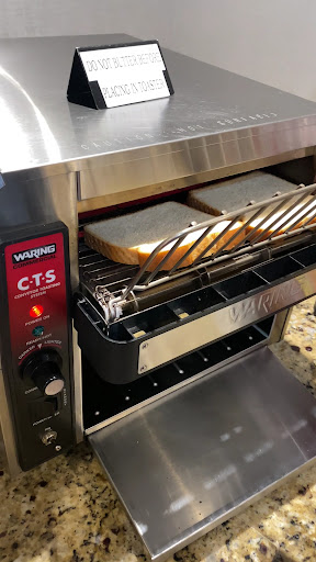 FOOD DoorDash friendly. In-room amenities: Large mini fridge, Mini microwave, Cuisinart coffee bar. Ice is available on the floor The breakfast offering was amazing; Cereal, juice bar, waffles, eggs, sausage, biscuits & gravy. Instant oatmeal, eggs, yogurt, fruit, pastries.