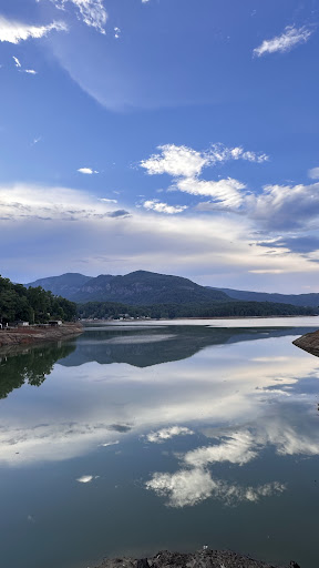 We stayed at the Lodge as a stop over before heading to Atlanta. We were greeted warmly at the front desk and shown to our room. The room is beautiful, clean, well decorated and the bed is comfortable, a delightful blend of rustic and modern. The bathroom is elegant with an amazing view of the lake and mountains. Each room has its own air conditioner and with the heatwave, itâs wonderful to have a cool room! We had a waterfront facing room and sitting out on the little patio looking at the view is so relaxing. A bottle of wine is available in the room to purchase which is a lovely touch. We ate at the restaurant and not only was the service outstanding, so was the food! The chef sent out a little tasty morsel for us to try out. We ordered the bread - warm and fresh! My steak was done to perfection and the orange crĂšme brĂ»lĂ©e was delicious. We walked down to the deck and the view of the mountains and lake reminded me of Italy. Just breathtaking. The hurricane has certainly left some damage, but the beauty remains and we are told the lake should be functional in 2026. There is so much to love about the Lodge, everything is so well taken care of and so well thought out for the comfort of guests. So many great spots to sit and enjoy the view. There is such a feeling of tranquility sitting at the lake as the sun goes down and a cool breeze comes in after a hot, humid day. As we sat there, I couldnât help feeling that we were incredibly fortunate to have such beauty just a few hours away from home. Something to take note of : we were told that the walls are not soundproof and quiet time is from 9pm - which I was really happy about and was looking forward to a peaceful, quiet night âŠ.of course I assumed everyone would respect the policy given that itâs an adult friendly hotel. Well at 11:03pm the room next to us still had their TV on. Thankfully a white noise machine is thoughtfully provided in the room and I made use of it trying to drown out the noise from the tv - this was a small blimp and by no means spoiled the experience. I highly recommend visiting and enjoying warm hospitality and outstanding views. The service we received from everyone was friendly and eager to make sure we were comfortable and had what we needed. We will definitely be back (despite the thin walls đ). At 11:24 pm silence had arrived, sound machine turned off and it was time to slip into a deep sleep. Thankful that we got to stay at The Lodge on Lake Lure. Looking forward to returning âŠ.soon!