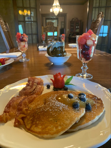 Breakfast was excellent, elegantly presented, and included yogurt parfait, eggs, Canadian bacon and a selection of juices. It also provided us with an opportunity to enjoy talking with Pam, who was helping out since we were a last-minute booking.