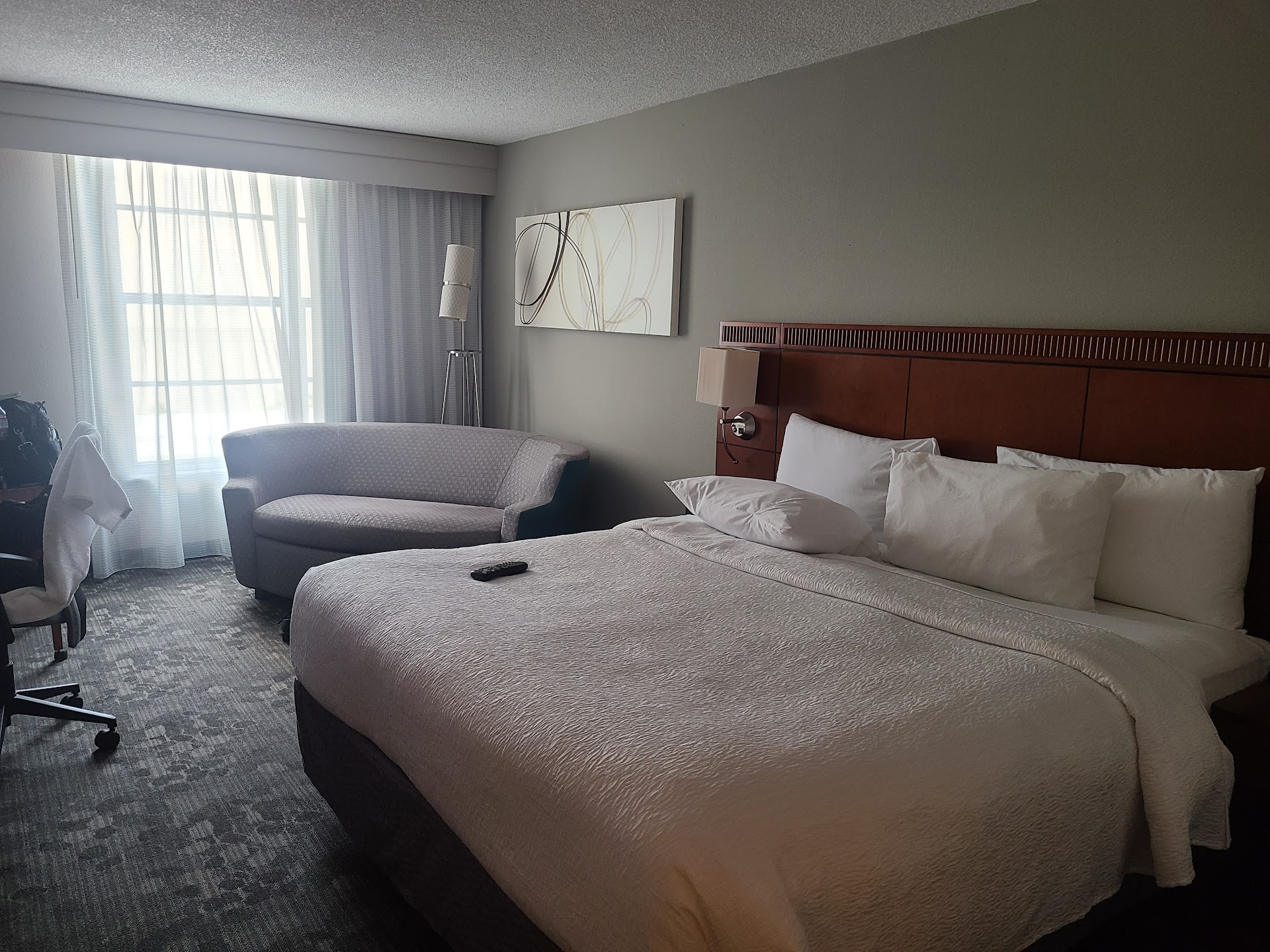 Those start at around 4am when I'm awakened by a single hotel phone ring. I didn't hear anything else so I thought I imagined it. Well then the phone rang once about 10 minutes later. Also, my TV turned on with the 'Bon Voyage' goodbye on it. I call down to the desk and ask them what is going on and they say that my Marriott friends/family discount form has an issue. Example of my name is Samantha, what my ID says. My reservation was made under Sam. My discount form says Sammy. He says that they'll need it updated or I'll have to pay full price. I tell him I'll get a new form to him in the morning, he says no problem and apologized for the inconvenience. Unfortunately my TV turned on again about 5 minutes later, so at this point I'm up. Took me about 2 hrs to go back to sleep.
