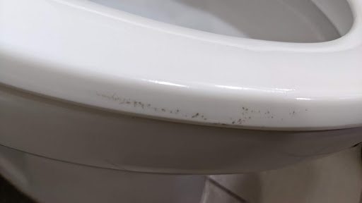 Trigger warning — if you can stomach it, look at the photo of the hot tub and look at the color and fogginess of the water therein. Notice also the scummy film all around its tile edge, and the same thereupon the main pool's perimeter. Speaking of the hot tub; it hasn't worked anytime I've been there, illustrated by whatever sort of rigging is on display in the image of its taped-over jet button with a tissue (?) affixed to the wall.