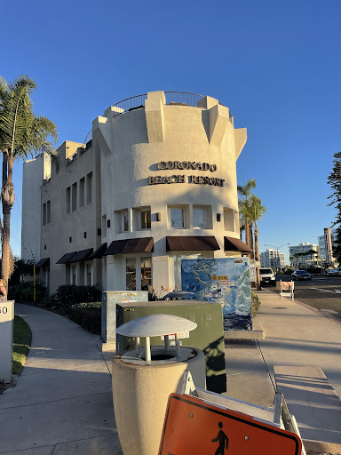 The location is hard to beat--right across from the Hotel Del Coronado on Orange Avenue. Restaurants abound from the resort to the ferry landing, the beach is an easy walk, a little theater and lots of little retail shops are nearby. The bus stops right at the corner and a free shuttle takes guests to Lowes, which has a larger spa and pool available to CBR guests.