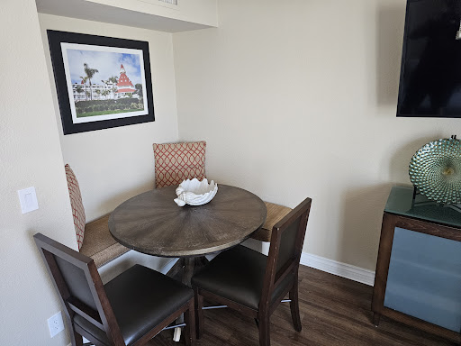 Read moreIf you are looking for a resort a great location, close to the sand but which won't hurt the budget, look no further than the Coronado Beach Resort. The property is gorgeous, the staff is unbelievably friendly and helpful, and the property has been recently remodeled. There is gated underground parking, an elevator which takes you directly up to the lobby or to your room, and there's even a rooftop lounge with patio, spa and some rather nice views. Two things particularly impressed me about this resort: first, the beds were incredibly comfortable. When I travel, I often have difficulty getting a restful sleep, but not here. The bed was just perfect, and to my surprise, there was a swan made from towels on the comforter, much like what one finds when on a cruise. The second thing which really stood out for me about my stay was how enthusiastic-to-serve the employees are. I rode an elevator with a gentleman named Ramon. He asked what floor I was heading to, pressed the button and said, "You know, in January I will be working here 21 years! If you need anything at all, my name is Ramon and I am here to help you." He pointed at the embroidered name on his shirt as he told me this. I didn't need Ramon for anything, but I sure knew that had a need emerged, I had an advocate on the property. The rooms, too, were wonderful. There was new, patterned carpet, nice drapes with the extra layer for darkening the room, thick crown moulding and baseboards, and I had a fireplace and a patio with views to Coronado Bay. There was a kitchenette area with granite counters, a stainless steel refrigerator and thankfully for me, plenty of electrical outlets to charge my devices. The flat screen TVs on the wall worked just as I had hoped and were connected to DVD players. I was here for the National Association of Realtors 2015 conference and was very pleased that I enjoyed a restful sleep and had everything I needed during my stay. I'm looking forward to returning to this resort with my wife and kids very soon and highly recommend...