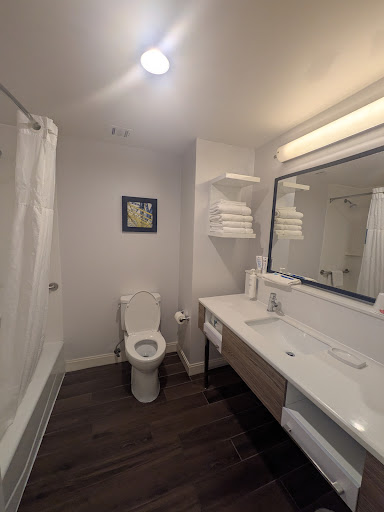 Read moreI traveled a lot and stayed in very nice hotels, but this hotel is really EXCEPTIONAL. The location of the hotel is quite far from heavy traffic but yet you still close to everything. The lobby is nicely designed, with cozy atmosphere, very clean. Restrooms nice and clean. Hand sanitizers, good quality, everywhere throughout the hotel. Rooms are nicely designed, very practical, I love electric outlets location, especially when you working in the room and need everything easy to access. I trully love my working space. Room designed very smart practical with calm colors. I do love pictures on the walls, make room look more then just a regular hotel room:). Very thoughtful. I am a clean freak especially when I'm visiting hotels. Restroom in the room is super clean, corners on the floor and floor moldings are perfectly clean! Really, kudos to cleaning personnel. Every inch of the room is clean. It is very important especially now, with Covid. Also, maybe it something little, but I do pay attention, this hotel use good brand for soaps and lotions. And what deserves a separate review - is breakfast boxes this hotel provide to their customers. I honestly didn't even count on breakfast at all. Or max I expect a muffin. Especially considering our times, that hotels cannot serve hot breakfast. This hotel went to a totally another level. I got beautifully prepared nice box. Which is again, very practical and thoughtful. So it this box I found personally wrapped pilled hard boiled eggs, yogurt, orange juice, healthy snacks, mini bagels, mini jam and cream cheese, muffin. Its so cute, healthy and amazing at the same time that it just blew my mind. Who ever come up with this idea is supermind:). And also personnel is amazing, very nice polite and attentive. I didn't workout in gym yet, and I wish one day I will swim in the pool, but these facilities look amazing to me as well. I want to say thank you so much for every employee of this hotel. You are doing trully amazing and exceptional job here! Super clean, comfortable, practical, with family environment. Amazing. I will stay...
