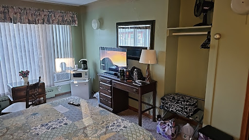 Read moreThis a very nice little Mom and Pop Motel with affordable, clean, comfortable rooms and lots of parking. It is on a main street but far enough away that the noise from any traffic isn't an annoyance. The rooms are small and show their age, but are comfortable. There is a desk chair, table, comfy chair, and a queen bed, microwave and mini fridge, and a tv with numerous channels to choose from. Our queen bed was worn and needed to be replaced as the middle has sagged, making it difficult to not roll into each other. There is a no smoking and no pet policy for the room we stayed in, with parking directly in front of the rooms. There is a highly rated cafe across the street, and it is a short walk to the numerous main downtown businesses. It is worth the price, even with the few minor...