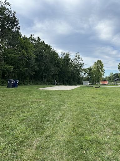 It was a little tricky getting the camper in. At first we backed it in, but realized the hookups were on the other side. You have to pull straight thru like a pull-in spot, but to get out you either have to back up awkwardly or just pull thru the other Rv spot (if it’s empty). The pad is concrete and very spacious for tables and chairs. It has a fire pit and trash cans. It’s super close to the trail around the lake and the visitors center. It’s also near where you can rent kayaks or canoes. There’s a large grassy field behind the camp site that’s great for playing with kids or letting your pet explore.