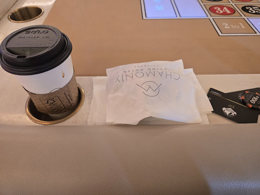 All the table players were allowed to order in-room dinings at the baccarat and nowadays are allowed to order any food in a to-go box then eat at ANY table, which is Chamonix' house rule.