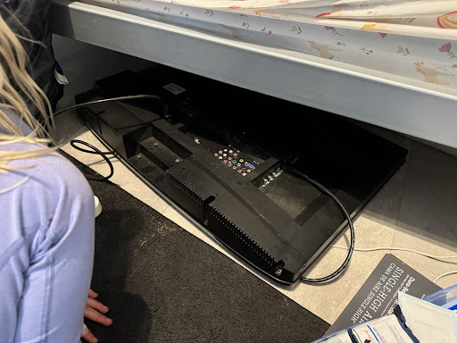 My kids found a broken TV under the bunk beds the night they wanted to have a sleepover at their grandparentsâ cabin. The bunk room didnât have a window covering and there was a bright light outside shining directly onto the top bunk. There were trim pieces coming off, a random hole in the wall filled with foam, a missing couch leg held up by a brick, unfinished paint on the walls and some other odd things.