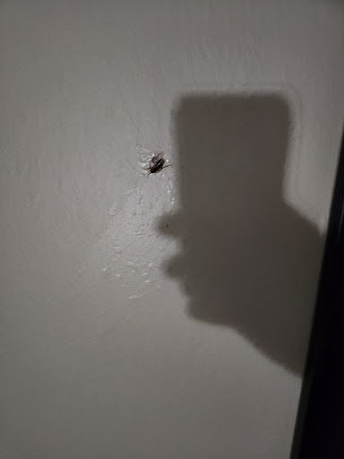 Next, around 5 in the morning, my wife awoke me. She killed a baby roach that she saw on her cup near our bed. She awoke me because there was an adult roach on the wall by the tv, ducking in and out from between a hanging picture. I went downstairs, explained the situation to Charles, and showed him a pic of the adult roach I smashed. He assured me he had never heard of them having the issue in 17 years working there and that the GM would be able to adjust our bill for any inconvenience.