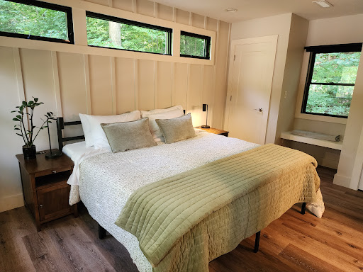 Read moreWe stayed in the 4 person king cabin over labor day weekend and had a lovely stay! The cabin was great and the campgrounds super quiet - especially since they were 'sold out' over the holiday weekend! The one bedroom had plenty of room to put a pack n play for our baby (we brought) and has great blackout curtains on almost all the windows to encourage sleeping in after a late night! The bedrooms and by the front door have lots and lots of hooks which is great for hanging up all kinds of stuff to keep organized! My kids and I loved the back porch swing as it was perfect to relax on and enjoy the private forest area just behind the cabin. We spent a good portion of each day hiking in CVNP and then spent one night at a show at blossom (so close you can hear it very quietly! And who doesn't love being back to your bed after the show ends in just minutes!) A few things for other to note if you're heading over - 1. The overlook is beautiful (and has a picnic table!), but you may want to bring your hiking poles if you've got bad knees or are carrying kids on your back as it's a steep hill and 10-15 min walk (And definitely don't forget the bug spray). The pillows in the bedrooms are down feathers, so if you're allergic bring an alternative! (Comforter is not down) A nightlight in the bathroom might be a handy thing to bring if you have kids to split the difference between the bright bathroom lights and the darkness of the room. Yes there's a coffee maker, but don't forget your coffee and filters, on the things to bring note- may want to bring a pot if you're making pasta (they have pretty much everything else cooking...