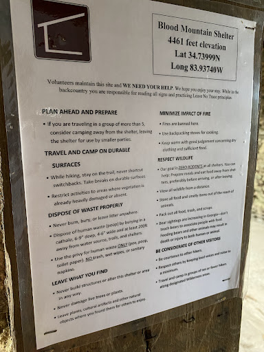 Shelter on the Appalachian Trail. This one was put up by the Civilian Conservation Corps in 1934. Made of hewn stone, it is a gorgeous building but it’s made of stone and there is currently a fire ban - wear your puffy to bed in the Spring, Fall, and Winter. There is a privy with arguably the best privy views in GA. The rocks behind the shelter provide a stunning overlook of the surrounding area. Bring your water or prepare to hike - water source is a haul (est - 3/4 mile) with some really nice elevation changes for you. If there has been recent rain, very recent, you may see some...