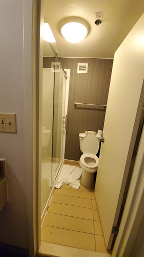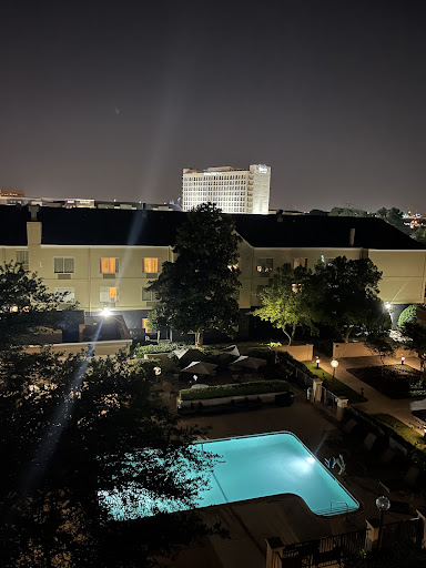 We had a suite room. We went to Texas for a sneaker con. The outside of the hotel is nice, the inside is nice too. The staff were always professional and helpful. One thing that I did not like at the start of out vacation was that they have a full breakfast area but do not offer it. If I would have known that, I would have stayed somewhere else. The free breakfast is so easy and makes your day longer, you don't have to go get breakfast ya know. But you do here. Upon entering the room (106) with the key card, there is a mildew like smell that lasted the entire stay no matter what we sprayed. There is a micro bathroom to the left with a shower and a toilet and I do mean MICRO. The shower pressure is nice. They also offer their own shampoo, conditioner, and body wash (green tea). It smelt good and lathered up pretty good. The shower head was large which was nice. The bathroom is so dang small that you have to squeeze between the shower and the toilet just to shut the door. Pictures below. Also when you flush the toilet there is the most god awful screeching noise that will last until the tank is filled. It WILL wake whoever is sleeping FYI. To the left there is also a sink and counter top with a mirror. It's an ok size, for a suite I thought it would be bigger. Across from the sink is a closet to hang clothes with an ironing board. The room to the right as soon as you walk in is the bedroom. There is a flat screen tv on top of a long dresser. There's a sitting chair in the room as well with a tall lamp beside it. Two bedside tables and a king size bed. The bed was...ehhhh.... it was kind of firm. The bed also had urine stains on the mattress and what looked like blood from a past murder lmao. Pictures below. Air-conditioner in the room which was nice! We like it ice box cold! The bed had feather pillows. I absolutely hate hate hate feather pillows! They have no support what so ever! Walking straight from the front door you will enter the sitting room. It has a couch and ottoman, a flat screen TV, large table, a desk. A counter with a microwave, coffee maker, a mini fridge, air conditioner and lastly there is a full length mirror on the wall. This extra room was a nice addition. The only 3 issues I have with this room is that we found 2 earlier bugs in it. One picture is below. And that this room is so dim all day. You can open the blinds which give so much light but you don't have that option at night. The view from the sitting room was pretty. It was of the pool and outside area. You could also open the sliding glass doors to sit. 3rd issue was again the dang stank that stayed in the room. Thus hotel is so loud at night. I was woke up at 1 am and 4 am to yelling, running down the hall and what not. Another con about this hotel is the parking. Its 7 dollars a night which is not too bad but it's dang near impossible findng a parking spot and if you do it's going to be in a dark area that your scared to leave your car in. They have signs saying to lock your car door and take things inside. Just to enter the building you have to slide your key card! That is nice, that way randoms can't just walk in. Overall this was a good place but I probably won't stay again though due to the bathroom...