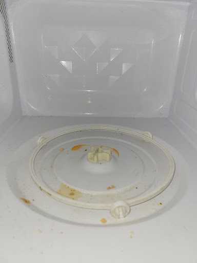 Once I got out of the shower frustrated and disappointed I got dressed and decided to turn on the TV. It took me 10 minutes to find the remote. It was on the floor just under the pull out sofa. Too my surprise I also found a can of mace next to it under the pull out sofa. Now I'm not sure if the room has been properly cleaned. The refrigerator has mold growing on the shelves, the microwave still has food bit inside and missing the turn table. The carpet is ragged and needs replaced.