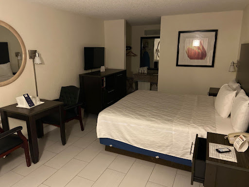 Worst hotel I've ever stayed in in my life, I don't even know where to begin. After arriving at the Fort Lauderdale Airport, my family and several other Red Carpet guests waited for 2+ hours for the shuttle, each time we called Red Carpet to ask when the shuttle would arrive they said it comes every hour, it did not, and they were only 15 minutes from the airport. When the shuttle came, so many of us had waited that we had to sit on other's laps to fit in the shuttle or be left at the airport to wait for another to come, when we complained about the wait to the driver he argued with everyone that he had come several times each hour when he hadn't. The lobby was small and dirty, many people were standing around waiting to be helped by the desk worker, and there are several parts of the building under construction and inaccessible making it very difficult and confusing to get inside to the rooms. The pool was open from dawn until dusk, and at this time sunset was around 4:30-5pm so there was no opportunity to swim. The rooms were dusty, some outlets didn't work, the bed frames were on wheels and rolled when you would sit or lean on it, and the bathroom door wouldn't close as the toilet bowl was in the way. We had to ask the front desk for the wifi and the connection didn't work inside the room. There was no food within walking distance, there was a food truck in the parking lot that we didn't trust to eat from. We had to DoorDash our meals which costed easily $40+ for the distance and 45-60 min wait time, don't even get me started on that because each time we DoorDashed our orders were wrong or missing something, not Red Carpet's fault though. Anyway, while we were away during the day and returned one bed had been made while the other wasn't touched, trash left in the trash cans, new towels and soap were just left in a pile on the cleaned bed. Could also hear the airplanes landing and taking off throughout the day and night since it's close to the airport (about 15 min). All this and the worst part was that we couldn't cancel the remaining days we booked to get a different hotel, their cancellation policy is nonrefundable. DO...