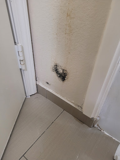 To the room... the hall way smelled like a sewer lime leaked. The room is outdated, but ok as I am not picky. I get into the room and to my surprise it was nice and cold. Plus on that part. I noticed there was a hole in the ceiling next to the TV. Weird right. But the room didn't smell like the hall. Thank goodness for that. Looks to be clean and orderly.
