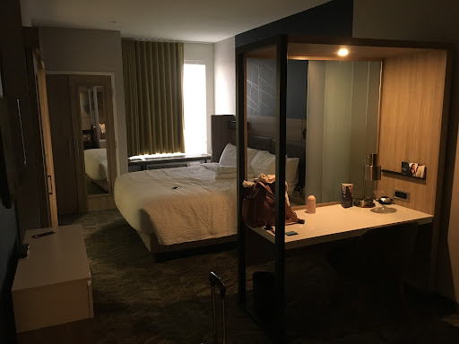 Read moreFirst, the bad. When I checked in, the room was beat up in several places. There was really bad staining on the console under the TV. The pole thing for the curtains was broken off. Some of the walls were peeling. Also, the rooms were not cleaned often enough. There was some kind of letter saying something about reduced cleaning procedures for COVID or something like that, but I don't believe that COVID is an acceptable excuse anymore. If you're short staffed or struggling to make a profit I'd much rather hear an honest explanation than some continued public relations propaganda pitch about how you're trying to limit exposure to COVID. My trash was overflowing every day because it wasn't taken regularly (and the receptacles are tiny). My dirty towels were often ignored. I did not use them excessively - every other day or so I had a washcloth or towel that needed to be replaced and they just sat on the floor for days at a time. Glasses (like the actual glass ones) were not replaced frequently enough. When I asked about the glasses, I was told that they were "out" (i.e., they just weren't doing the dishes). Finally, this one is minor, but there was supposed to be a bar onsite and when I got there I was told that it was not in operation. Overall, I expected a higher level of service from a Marriott brand.