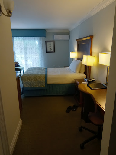 Pros: -Hotel was clean and COVID compliant, wheelchair accessible to the lobby, first floor rooms and pool area but good luck getting to the guest laundry in the slanted parking lot... -Beautiful hotel grounds with stunning plants and friendly staff -Next door to a public park (helpful for smokers, as the hotel is a non-smoking property-- there's even trash cans for your cig butts and cigar tips, so don't litter!) -(Semi) Heated outdoor pool that has accessibility chairs and jacuzzi tub -Half a mile walk from the beach and major shopping area-- the Plaza at 15th street and Camino Del Mar. Very cute place with public seating and bathrooms. -Free Keurig coffee and other room amenities provided (plus a reasonably priced mini convenience store) -You can see the ocean while sitting in front of an outdoor fireplace at the cafe patio. -Staff was always masked and non-vaccinated guests were encouraged to do the same. However most guests were unmasked as San Diego currently does not enforce a mask mandate, so travel at your own risk. -You can use ride share apps to get around, such as to and from San Diego International Airport. -Farmer's Market at the Civic Center Saturdays 1pm-4pm. -The one and only liquor and smoke shop in Del Mar, is also a deli that's open for breakfast.