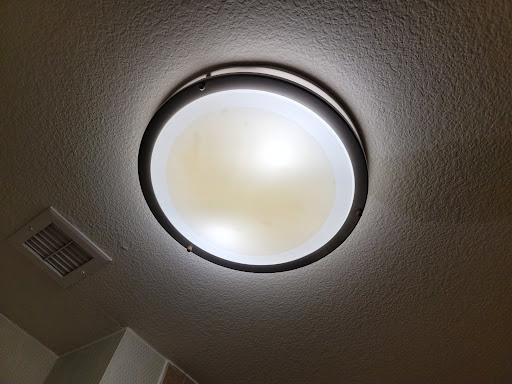We arrived late on a Friday. Room was as expected. We got settled in and went to sleep. Woke up Saturday morning. I heard water running as you do when others take showers in hotels and jumped in the shower. I looked up in the shower and their was visible water from above on the ceiling. I got out of the shower and noted a small stream of water coming from the fire sprinkler in front of the sink. Got dressed, took pictures and a video because it was only dripping by then. The water on the ceiling in the bathroom spread. We went down to tell staff. To make a long story short, water ran into the light fixture in the bathroom (I took a video because it is hard to see in pictures) and there was visible water marks (fresh) on every ceiling on that end of the room. The day manager (I think) came up to our room and my husband showed him. He had brought towels to clean up the water, which my husband already had, and left the towels stacked on the floor. He said he would tell maintenance and get us a new room. They were booked so we had to wait until someone checked out. We packed all of our stuff and took it with us. No other staff members were aware of the situation. When we came back Saturday evening, rhe clerk had to contact the day manager to figure out where we were. Upon getting up for breakfast my husband noticed we already had been charged for both nights. He talked to the lady at the desk as we were surprised that we were not offered anything for having to spend time explaining the issues, packing up and leaving the hotel until night. The lady said she could not do anything but offer points. My husband asked to speak to the manager. He would not be available until Monday. They would have him call. Surprise. No call. My husband called customer service who said there was no issue reported. We sent pictures and videos. They said they have had ro give rhe manager 4 hours to call us. After all, he is busy. My husband called customer service after about 6 hours. They called the manager and put my husband through to him. The manager told my husband there is no water damage, the hotel is full and they are number 12 in the chain so he is doing something right. My husband said he did not appreciate being called a liar. Since I was not personally on the call, I don't know all that was said. We did get refunded 1 night. The room we were moved to on the 1st floor had a large old watermark on the ceiling above the bed. The first room we stayed in was 325. Water was leaking in the light fixture in the bathroom. I think this is unsafe. We will not ever stay at that...