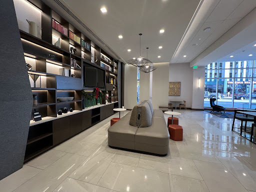 The building was very nice, overall. It's a good location, right in the center of downtown. But, the landscaping around the hotel was non-existent. There were large, rectangular concrete planting areas that contained no greenery whatsoever, but were full of dirt and piles, upon piles, upon piles of dog excrement. All three of them were basically dog latrines, which is really sad, because there were containers of poo bags standing in the corner of each planting area. If there was anything you could do to make the hotel more attractive, it would be to go clean up all that dog poo, and plant something in that dirt. At the very least, it will make the poo harder to see. This is also the first thing I noticed when walking up to the hotel; giant, barren planting areas full of dog poo. And I assume it is the first thing anyone notices when walking to the hotel. I think hiring a landscaper to plant those areas would do wonders for the hotel's image, and attract more guests. Seriously, this would be a nominal investment for Hilton, and would likely pay for itself quite quickly. No-brainer. If you want to be seen as a classier sort of hotel, at least do the landscaping, remove the poo, and get rid of the stickers...