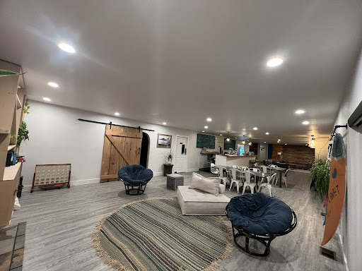 When we arrived the lobby area is very inviting. It was super clean the fire place was kicking and they left out pitchers of drinking water, clean plates and utensils for guest to use. Thanks for being thoughtful! They had board games and a small workout area they even thought about the fur babies. They had bowls and beds for them. They also have a laundry room for guest that was free.