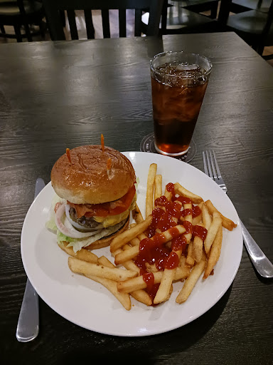 I did not get a room. I just had dinner on Feb. 18, 2023, at 9:00 pm. I had a cheeseburger all the way with bacon and BBQ sauce, fries, and unsweetened iced tea. The cheeseburger was excellent, though so tall that taking a bite at first was tricky. Also, the bottom bun was stale, but I chalk that up to an honest mistake. It really didn't matter, because the rest of the burger was so good. I asked for it medium-rare, and I got it medium-rare. The fries were salted, so if you can't handle salt, mention it to the waitress. Service was excellent. The place was clean. The chairs were comfortable for hard wooden chairs. Very comfortable atmosphere overall. I will be coming back as often as I can. My only complaints are that they have a very limited menu, but then they have been open only a few months (I come to DeWitt often and I used to watch this hotel being built as I drove into town). Also, the prices are a tad expensive, but the food is worth the money. My tab for everything, including taxes but not the tip, was $18.42. As you can see in the photos, they do have a nice bar. I was tempted to imbibe, but I have...
