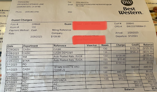I recently had a terrible experience with staff upon check out of my stay January 2024. When checking in they asked for a card or $100 cash deposit. I was agreeable to the cash deposit and the man told me that mostly itâs for smoking in the room and that they would check the room prior to giving it back. I was agreeable to this. No problem. Upon check out I gave my room key back and the front desk girl asked a house keeper to check the room. She called in and denied the deposit to be returned to me. She told the front desk girl the room smelled of smoke. ||I told the girl that it maybe possible since i would smoke outside the room and even that my clothing mightâve smelled but I wouldnât risk $100 to smoke in a room when i would step out for 5 min. Itâs an outdoor hotel so I just opened the door and step out. No big deal. She stated there was nothing she can do. She showed me the initialed contract that stated no smoking in the room and no weed smell, perfume or spray smells. I canât canât help that I might have that odor on my clothes especially in the humidity and cold weather- it sticks. I teied professionally explaining this and she said she understood considering it was by the highway and the smells may drift in but even after half an hour of talking to her she stated she couldnât do anything for me. I asked for a supervisor she stated she was the supervisor. And that she canât help. I asked for a manager she stated the manager would be in later and to call around 6-7pm I called around 7 and a gentleman answered stating that the manager doesnât come in until 11pm so I called around 12am and a lady answered, mind you they refuse to give your their names, she stated a manager doesnât work at this late hour but she was open to hear my complaint. At this point Iâm back in my home town miles away from the hotel. I pleaded with her and explained to her that the hotel is breaking their own contract. Just because I smell of smoke doesnât mean I smoked in the room. I told her to check the cameras and she stated she was not going to go back and forth on the technicalities. ||I had my husband also call after all this and we got the same lady who wouldnât give us her name and when we asked for the manager she transferred us to a phone line without a word, and the phone line was disconnected. It was almost like she was fed up and just wanted to send us to that line knowing itâs wasnât available. ||Iâm truly shocked, hurt, and feel I was treated unfairly and the rules were broken on their behalf. THEY ARE THIEVES! They see $100 cash of course theyâll take it. BEWARE- also, I will pursue. I donât like being taking advantage of or played. ||Good luck with this one. ||Oh and make sure to take...