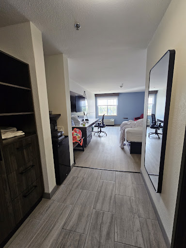 Read moreMaking the reservations I saw that the lobby was under renovation. Friends we were traveling with told me it was under renovation back in January. Upon arriving we found that the pool was also under renovation, and friends said that they could see no progress from January. Rooms were big. We had two queen beds, friends had a king. Plenty of extra room in both rooms. Bathroom was nice. Loved the shelf under the sink and countertop to sit our toiletries on, and no clutter on countertop. Plenty of towels and wash clothes, and they were so soft. Dove shampoo, conditioner, body wash, and soap bar and all replenished each day. The first night we had neighbors beside us and above us that were up most of the night jumping around, so we didn’t get much sleep. Could be because of the vinyl floor planks on the floor, which looked very nice, but maybe not a noise barrier. Sunday afternoon we had a rain / hail storm, and the rain was pouring in through our window. Thankfully there was a house cleaner on the floor that came in with towels and helped us clean it up. But this needs to be fixed or there will be mold growing in the walls. Also in the stairwell, the exit door had water running in during the storm, and water all over the floor. Again, there could be mold growing and somebody could slip and fall. As said earlier, lobby was under renovation, including breakfast room. We found a crowbar above one window ledge (above a table) that was about to fall down. We took it off the ledge and gave to the front desk woman / receptionist. To get ice we had to walk into a small hallway to an alcove, with a filthy floor from construction (Sheetrock dust, dirt, etc) to get to the ice machine. As for the front desk workers, they were friendly and helpful. Really feel sorry for them dealing with this renovation for so long. The complimentary breakfast was good - scrambled eggs, sausage, bacon, bagels, muffins, fruit, yogurt, waffles, cereal, etc. also, as we entered the lobby, every time we had to pass an employee smoking right outside the door. Not appropriate for a business! Overall an okay stay but not sure I would return if I came back...