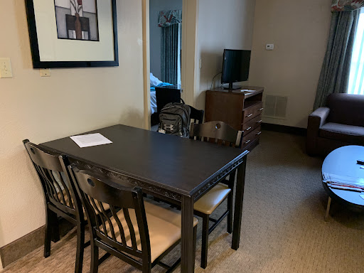 Our room also smells like the non-functional gym downstairs, like dirty socks, not fun to sleep in. Lots of big stains in the carpet and very heavy chairs that don't have proper pads on the feet and are ripping the carpet. While location is convenient, a much better choice for similar condo-style units is the Sonesta ES Suites LBV right around the corner. Unlike Hawthorn, they are improving their property and have fantastic breakfast choices, even though not free.