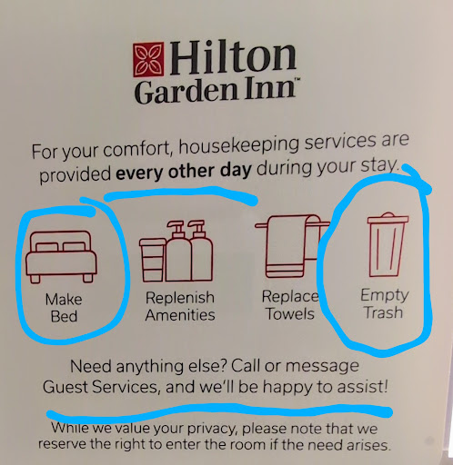 Hereâs some foreshadowing for those who are still reading. We stopped by the front desk to request fresh towels. As we were waiting in line, we overheard the hotel clerk tell a guest that housecleaning services will not be provided unless it is requested by the guest. We were under the same assumption for our stay.