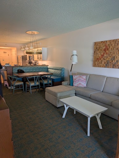 Read moreThe pros: The grounds and rooms are clean, rooms were well laid out and organized. |The color scheme was very upbeat.|Everyone we met was friendly. |There's always something going on, lots of options for all ages.|Location can't be beat, walking distance from a cvs, and many restaurants nearby, yet quiet.|Parking is plentiful, and the layout of the resort is very nice. Lots of opportunities to walk around and sit down to watch the lake. |The opportunity to earn sand dollars was a nice touch for the kids, they bought something fun with it at the end of the trip.|Now for the cons...|The dishwasher in the room was falling apart, definitely in need of replacing.|Housekeeping has no schedule and if you like to plan your day around your service, you can't (sometimes they came early in the morning and other days afternoons. We ended up placing the don't disturb sign on the door most days).|There's no communication from front desk unless you physically inquire. We were here 16 days and during hurricane Helene, but no word whatsoever from front desk about the situation. Coming from a hurricane belt ourselves this isn't acceptable as there are always guests looking to roadtrip or visit parks that were shut down.|The smoke alarm in the bedrooms flicker a super bright green light, and are posed towards the bed so no escaping it, even with eyes closed it still bothered me...|The pillows, horrible. Very lumpy and uncomfortable.|The front desk doesn't inform you of anything going on on property (like we missed out on s'mores nights and the free ice cream refills if you buy a bowl. We weren't informed). |When checking in you are forced into a timeshare pitch to be able to get your parking pass.|The staff starts leaf blowing around 7:30 each morning. Didn't bother me but if you're looking to sleep in it might be annoying, quite loud. |The pool at the big slide is super small, lots of unused space where they could have enlarged the pool. And it's shallow everywhere...4 feet |My last annoyance was the rules at the poolslide. There's always a staff member monitoring at the side of the stairs to the slide, and it highly depends on who is there what's allowed and what isn't. The majority were overly strict on not allowing anyone to come down the slide any other way except sitting down, but we had one instance where plenty of kids were coming down on their bellies, nothing was said until our son did it and he got in trouble for it. Left a bad taste and embarrassed him.|They really should ease up on the rules, it's not a super fast slide or anything that could cause an accident, let the kids have some fun.|Also each person has to wait at the bottom of the stairs until the previous person comes out of the slide, this isn't very efficient and makes the wait time longer. Let everyone go up and wait upstairs until the person comes out...||All in all we will be back simply because of the location and...