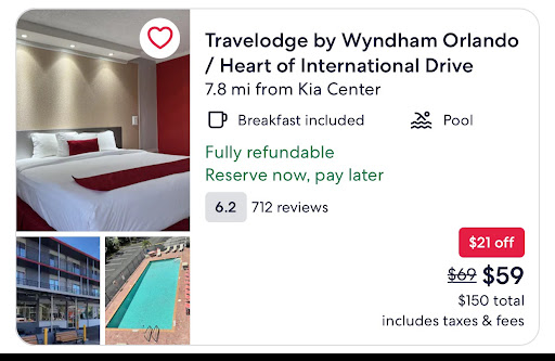 Read moreI wouldn't recommend staying here, even if it was your only option. It is located on I-Drive, but once you turn in it's like a different world. The gray paint that they chose to cover the building with adds to the dreariness of this particular Travelodge. The parking lot was dirty with trash and a heavy smell of cigarettes. I should have taken pictures. I think I was more embarrassed than shocked. I had my fiance with me. On the website they offer an option to have breakfast included and yes, there is a price difference in the rooms if you choose to do so. As we entered the smallest lobby ever, we noticed the "breakfast" that was mentioned. Oatmeal packets and coffee. Oh, ok. Anyways as we were checking in the desk clerk asked if we were checking in and stated if we were doing so that there was a $25 fee. When I was booking I mentioned I'd be checking in earlier than 3pm. There was not a mention of a fee. I was also charged the $100 deposit which I was aware of. Then $18 for resort fees which I was not aware of. I thought when I booked I was charged everything. Apparently not. Now, we were done checking in before 11 and were told that we had to wait until 11, but then told us to go ahead. I'm not sure why there's an early check in fee.....the room was clean when we walked in but ok. I went to use the bathroom and the toilet was broken. Rocking from side to side and the handle was completely broken. Why wouldn't they make sure this is fixed? I went to use the phone to call the front desk but there wasn't a cord for the phone. Sooo I just walked back up. Made them aware and they gave us jets to the room next door. We paid extra for a king sized room, with a couch. I'm 6 feet tall and comfort is important to me. The room next door was a queen sized bed, smaller and without a couch. I made them aware of the difference in room and costs and was told that since I was initially booked into the correct room that there was nothing that could be done. What??? That doesn't make sense. I was beyond annoyed. The microwave had to be used on the floor. It was on top of the mini fridge but the cord is way too short to reach the outlet. The only way it would reach was on the floor. In order for the TV and electricity to work is if your key is inserted into the wall. There is an ironing board without an iron. We asked for an iron and there wasn't one available. One morning we were laying in bed watching movies and housekeeping came by. They did a knock and open combo, didn't wait for a response and opened the door. I thought we had the door lock on. We made sure to not make that mistake again. Last but not least, I only received $55 of my deposit. We were told that the towels had a stain. Now, I know we didn't stain any towels. Our skin may look like chocolate but we don't stain towels. That also wasn't stated anywhere that there was a charge for dirty towels. We took showers and dried off with the towels. We weren't shown any proof of what we were accused of. Oh and in the website it shows a cute lil photo opp backdrop. Yeah, it's non-existent. The customer service is horrible, the website pictures are misleading and their policies just seem to be made up along the way. Shadiest hotel in Orlando goes to...