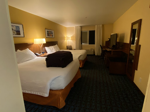 Read moreThis was our first stay at this Fairfield Inn, it will be our last. Our room was not clean at all. There was some sort of liquid that was splattered on the walls. Barf. When we pulled back the sheets to the bed there were two long hairs in our bed. Yes. Hair. We called the front desk to get new sheets and could not get anyone to resolve this issue. Apparently they didn't believe us. So we used our own blankets and didn't sleep in the beds. The breakfast was horrible. The "sausage" was not cooked and was disgusting. There was nothing on the breakfast buffet that was edible. Our family has stayed in several Marriott brands. Every time we travel we automatically book through Marriott. This was the worst experience we have ever had. The front desk was incompetent. At one point she lost my credit card and kept asking me for it. I told her I had given it to her. She had dropped it on the floor and couldn't find it. It just seemed that we were stuck in some alternate universe. There were so many problems with our stay. When we checked out the woman at the front desk wouldn't talk to me. Literally wouldn't say a word. Apparently they knew of our problems and decided not address them.... or us....