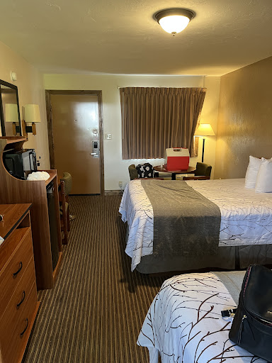 Read moreLocated in a marvelous western- themed town, Dubois, WY, this hotel is centrally located near several local restaurants and unique shopping experiences. There is a ground level stairway that leads up to street level to walk to these businesses. A large grassy yard, next to the pool and office, offers a place for kids to run or dogs to potty ( be sure to clean up after your four- legged companion) with a lit antler arch at night. The place is C L E A N and well maintained, something staff prides itself on. Our stay was peaceful and quiet. Rooms are spacious with a single cup coffee maker, microwave, a very cold dorm sized fridge, comfy beds and a hairdryer and iron/ ironing board inside the bathroom. The town of Dubois is a real find. It is just moments outside of Shoshone National Forest, has the Bighorn Sheep Museum and just 1.5 miles from the Grand Tetons. We ate breakfast both days at the nextdoor Cowboy Cafe. Someone knows how to make a big delicious breakfast, and there are several options on their menu. Dinner was Noon Rock Pizza across the street one night and a very filling and delicious meal consisting of a chicken sandwhich with fries and a cheeseburger and onion rings the next from Village Cafe just down the road. Grab a pint of homemade ice cream of various flavors from the gas station with the huge Jackaloupe and Sasquatch outside. This town and it's offerings was a gem of a...