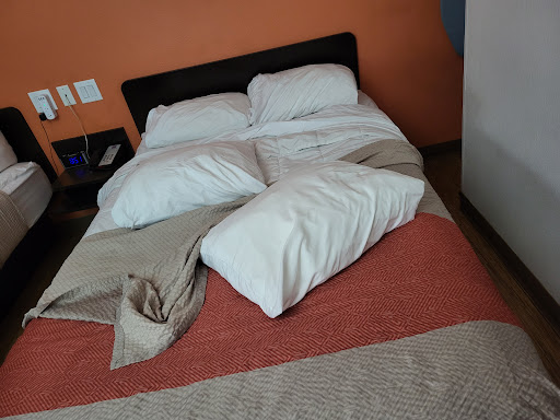 Read moreThe images online portrayed the property as extremely clean and this is what I thought I would be getting for over $150 for a single night. My husband and I noticed that the floors were sticky immediately after entering the room. I walked from the door to the end of the room and could feel and hear my sandals sticking to the floor. On top of that we noticed two large arms and hands above the bed on the wall...it didn’t really leave too much to the imagination to realize what these were from. My husband took photos and brought this to the staffs attention and requested a new room. They refused and said it was from the maintenance man working on something. The only others items in that area are the bed frame headboard and picture. They agreed to mop the floor but I found areas were still sticky. They did nothing for the wall arm imprints, they were still there. My poor husband tried cleaning the wall and dirty headboard but we could still see an outline on the wall. First and last time staying here. I’m pregnant so this just made the stay very uncomfortable knowing that that was above my bed frame. They should be ashamed for not acknowledging what was plainly on the wall. We stuck it out because we really had no where else to stay....