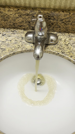 The front desk clerk relented a bit in her arrogance after she realized we were to have a 2 double bed room...not a King. She switched us to another quite disappointing room that met our original room type criteria. However, the room wasn't much cleaner, but had fewer dog stains. Unfortunately, we had to run the water faucets in both the tub and sink for approximately 15 minutes before a brown flow of water dissipated and finally flowed a relatively normal clear color. The toilet flushed brown for a terribly long time!