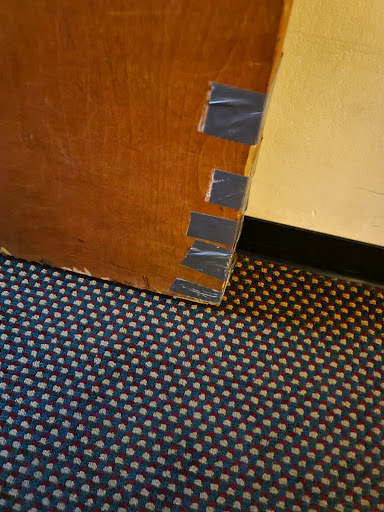 *First noticed plastic was wrapped around our smoke detector. Let the staff know they took care of it. *The doors had no security locks. But damage and holes where previous ones were.(made us feel as if it had been broken into multiple times) *Had to press or pull hard on the door to get it to click shut. *The mini fridge was smaller than usual and didnt seem to keep cold. *The walls had repairs that weren't finished.(putty and mixed matched paint) *Shower head had scum and also a hole above the liner. *Our phone to the front desk didn't work. No dial tone. *Found a Reeses cup, a lighter and some other small trash under the bed edge.(p.s. it's still there.) *Smelt of smoke multiple times, but could tell it had been sprayed a few times as well. *Pest control came to spay we ask if they could come back later due to kids napping and ourself. Then came back 20 mins later saying they had to come in. We understand they had to do their job. It was disturbing and we were also concerned about our belongings and kids being near the spay but made sure they were to stay away after. It was just inconvenient for us, as it interrupted nap time. *Left the night before check out when we arrived at the hotel for the night around 11pm we noticed as soon as we walked into the lobby it reaked of Marijuana. We turned the corner and the entire hall was filled with smoke. Far down the hall was a rowdy room. We let the receptionist know we weren't happy with the situation and that we couldnt allow our 3 kids nor ourself to stay in this type of environment. She let guest know smoking is allowed outside and to keep it down. We continued to smell weed as it lingered. We heard the other guest speaking fighting words and also heard the sound of a hit in the hall. *Immediately we decided we could no longer stay. We didn't feel safe and choose to leave then. Loading all of our belongings and our 3 kids up in the middle of the morning was uncalled for. Especially after a long day at a family wedding and a 12 hour trip ahead we were hoping to get some rest before our departure. *As we were loading the car, the cops came. Apparently we weren't the only one that found it to be disturbing. The cops cleared out the crowd. However, we still had the thought they could return unhappy and harmful due to the statement made they were a paying customer and didn't want to leave. There was about 20 people that was told to leave the one room. *Didn't seem as if anyone was held accountable for their actions at least by authorities. (Slap on the hand, just leave). I hope at least they were charged a smoke free. This hotel is going to need it, if it decides to remain a non smoking facility.
