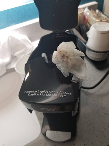 They actually served breakfast. Not just a to-go bag either. Room had no fridge or microwave but I was on the first deck with access to the microwave. The coffee maker had water stains inside so it hadn't been recently cleaned so I decided not to use it. They had coffee available 24/7. Usually fresh! Business center area was clean, organized, stocked and always available. Gym was well-stocked, equipment worked and was sanitized and always available to use 24/7.