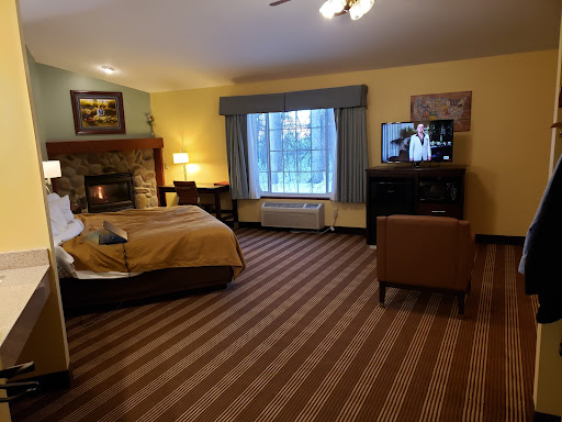 I booked the king room with fireplace and hot tub. It is a huge room!! Room number 126. Both king suites are the first rooms right off of the lobby, so very few steps with your luggage :) I got this room for about $100 and that was on a Saturday night! At any other hotel it would be FAR more expensive and HIGHLY doubt it would have been any better. Take a look at the photos I included. The only thing I would recommend to the management here, is to place the couch in the center of the room facing the TV (TV does swivel by the way so it can face wherever you want). I moved the couch to the center of the room and was still able to navigate around it, on both sides, with my walker. Placed there it did not obscure the view of the TV from the hot tub or the bed. I wish I had taken a picture of it placed there before I put it back. And the couch DOES have a pull out bed. The room also has a decent sized fridge (no freezer) and a microwave.