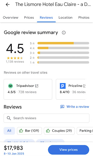 This was the worst “hospitable” experience I’ve ever encountered. I saw the prices and originally booked somewhere else, my first choice was closed for the Thanksgiving holiday and informed me I would be transferring to the Lismore at the same price I booked for; I was charged nearly double what I was quoted. The room I checked into had food left in the cupboard (logically where a microwave would be) I placed it in the hallway, it wasn’t removed until the following evening. The headboard had dripping liquid stains, the shower door next to the toilet had obviously never been cleaned of the urine that didn’t make into the toilet. I once tried to order room service from The Informalist, no one answered and was sent to someone’s personal voicemail. I got dressed and went down to order the food to my room, where the hostess first ignored our presence at one of the entrances, then required extra payment for room delivery (I was standing in the restaurant to order) and insisted we go back to our room to get our identification to order alcohol, even though it would be delivered to the room, which at the current time held our identification. The hallway had holes and dings along all the walls, what I believe is from the cleaning carts being mishandled. While walking back to my incredibly overpriced room, a woman cleaning the rooms swung leaking garbage bags across the open (1 foot wide) pathway, leaving a pungent, thick, brown liquid across the carpeting; the hallway reeked of rotting garbage for the remainder of our stay. This establishment is an embarrassment to Eau Claire, to my hometown, and I deeply regret bringing my fiancé to The Lismore Hotel. We are frequently travelers (approximately 24 bookings a year at resorts from Jamaica to East Africa) and through our observations we surmised that management is knowingly complicit and was not worth our energy to inform them of thew short comings on the property, as there would have not even been an attempt to rectify any issues. I fully expect an AI generated/PR problem solver to reach out through this review: I do not expect a refund or any sort of compensation. However, I do want this review to be a warning to any future guests who might consider staying at The Lismore. The Lismore is a Hilton affiliate managed by GF Hotels & Resorts, based out of Philadelphia and they seem to manage lower end Hiltons like Courtyard or other DoubleTrees, not luxury hotels. Please note my attached screenshot. It shows how much the company values their space versus the guests comfort. January 8, 2025-January 10, 2025 would cost $17K…. To management: please visit the Proximity Hotel in Greensboro NC, we believe this is more aligned with your price point and marketing demographic and would love to see you grow into something more successful...