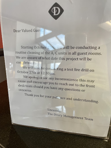 Every member of the staff at this Drury went above and beyond what is expected! Every staff member from the housekeepers to the General Manager in training spoke each and every time they approach you in the hall. They were all smiling, energetic, and friendly. I would be proud to have any of them on my team!