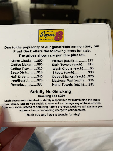 Read moreSuper 8 in El Dorado, Kansas||The good:|• The premises and rooms are clean.|• They offer a military discount on the room prices.||The bad (and there’s a lot):|• It took nearly ten minutes to check in. The woman doing this was challenged by the English language. We have no problem with people from other countries, but learn and speak the language. Requesting a first floor room (there is no elevator to the second floor) was like having your teeth pulled. “Why don’t you want a second floor room?” Because!|• The television had two remotes and neither one could get the television to work. Even with the assistance of the woman who checked us in, the television would not work. We were without the television all night.|• The shade to the window could only be raised 2-3 inches. There was no way to let the sunlight in.|• There was no clock radio. Setting a time to get up or viewing the time of day was non-existent.|• There was no phone in the room and no way to call the front desk or make calls.|• The bed made LOUD metallic noises. Every time my wife or I shifted during the night, the noise occurred.|• Speaking of noises, there was a metallic clang during the night. It sounded like it came from the bathroom or outside the room.|• There was no side or end table on one side of the bed.|• The reason there was no end table on that side of the bed was lack of space. There was about 12 inches between the bed and wall. Even getting out of bed was difficult because of this.|• The latch or lock to the room, a security feature, was very loose. In fact, one screw could be pulled out by hand.|• The lobby was extremely warm. It had to be 90 degrees. How can one sit on the couch, which was quite old, to enjoy relaxing.|• There was no pamphlets or booklets of the area. There is much in the town and surrounding area, but how can a visitor know of them.|• There were only two tables with plastic chairs in the breakfast area.|• The breakfast included waffles or cereal or fruit. The fruit was old as the apples were shriveled and one had hole in it. After pouring coffee in a clean cup, which was wrapped in plastic, there were things floating on top. We didn’t drink our coffee and trying to make waffles caused them to stick in the baking device. We ended up at the Casey’s gas station about a block away, to get breakfast.|• We should have gone to the Baymont Hotel across the street that had 3-4 times the cars in the parking lot or down the street to the Holiday Inn Express, which had at least 8 times the cars in their parking lot. ||A lot of complaints and take them for what it is, but our recommendation is to NOT stay at this particular Super 8 hotel. We’ve stayed at other Super 8 hotels and they are worth staying at – NOT here though. This place has...