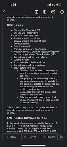 Given these significant inconveniences and the subpar condition of my room, I strongly believe that rooms undergoing renovation should not be rented out at full price. The hotel was aware of these issues yet continued to book guests, knowing that many of us had limited options due to government per diem