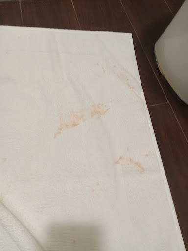 Finally a shower. The floor towel had some blood stains on but was mostly clean and you could tell it'd been washed.