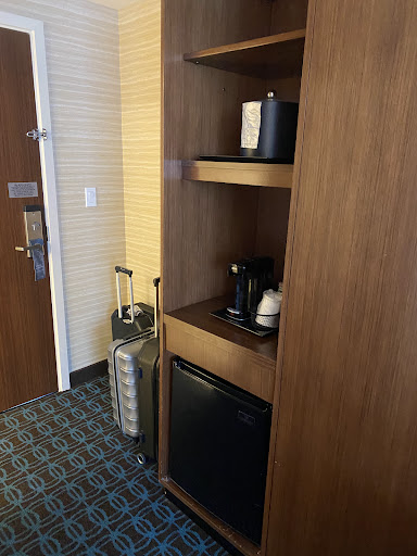 Some good things about this hotel. The breakfast offers a decent variety of food options, and it has a large lobby setting area, at any time of the day, people can sit there, even do work there. And they have a water fountain/filtered and microwave (with plates, silverwares, etc) available at the lobby seating/lounge area Itâs probably due to itâs in a busy airport area location, they have guests coming in and leaving at any hour, so lobby facility is pretty comprehensive. The location is pretty convenient. In-n-out burger and a big supermarket across the street, many restaurants and convenience stores within a short walking distance. Parking fee used to be $25, but seems like it recently increased to $30. We didnât use their parking, as there are plenty of free street parking spots if you drive around the block. Shuttle to the airport is a huge plus for this location (I believe it runs 24 hrs). They run every 30 minutes, and when it gets busy, they run additional services. They have 4-5 shuttle buses in total (shared with the next door hotel Aloft) which is pretty good. Nice courtyard with lots of seating and a nice swimming pool. Very chill.