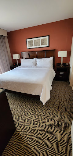 Read moreFor the price that you pay for this location...stay somewhere else...This was the worst HILTON stay ever... for lack of service, guest safety, management, professionalism. ...Parking, food, and guest service get a grade of a D. You pay $18 a day for a hunting licence for parking (parking gate broke, no parkimg for guest if they have an event, no one monitoring the handicap spaces). 2. The food was way too salty and served cold. 3. The staff seemed to be lacking knowledge, skill, and professionalism and little consideration for guest safety. My story... I arrived at the hotel as a disabled guest on Oct 1st. needing to park my car in a handicap parking space due to my back and knee issue. First there were no Handicap parking spaces..that was fine. But then due to a Hotel event there were no spaces in the lot at all. Except for a grassy area that I was not going to navigate with my bad knees in the rain... and two...there was a car blocking the entrance to this grassy area where I saw one spot. I ALSO saw that there was plenty of parking behind the hotel, but it was roped off with an Amazon trcks parked inside. When I went to the front desk to inform them of the situation, and that many of the cars parked in the handicap spots had no lic plate or handicap tag. They said there was nothing they could do...the gate was broken and they had no one to assist with parking, further I could not park on the yellow painted curb areas where others were parked..a front desk staff person said she could not find parking either and parked in the yellow, she told other gueat to park in the fire zone..and argument ensued between the two front desk staff as the other staff member told her and myself you could not park om the yellow. When I complained that as a Hilton Guest, I was paying $18 a day for parking...were the event people paying for parking too? ...there was still no response until another Front desk person said they would take the parking off my bill. Well, I waited 30mins for a park to open up that evening on the grass where I was now risking falling in the night rain. And as luck would have it, 2 days of parking showed up upon check out. I went to the front desk, they removed the parking fees again, and was told some one would call me about my bad experience... and they might offer me Hilton points....really? Still...